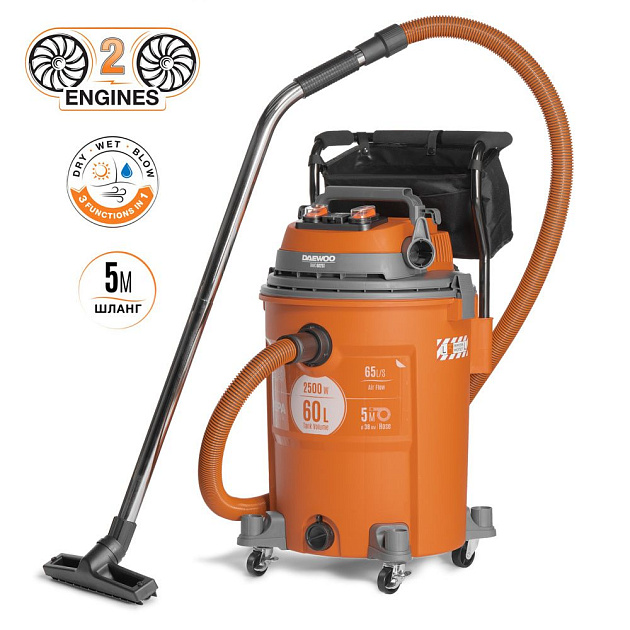 Увеличенная длина шланга до 5 м позволяет работать в труднодоступных местах не перемещая пылесос.